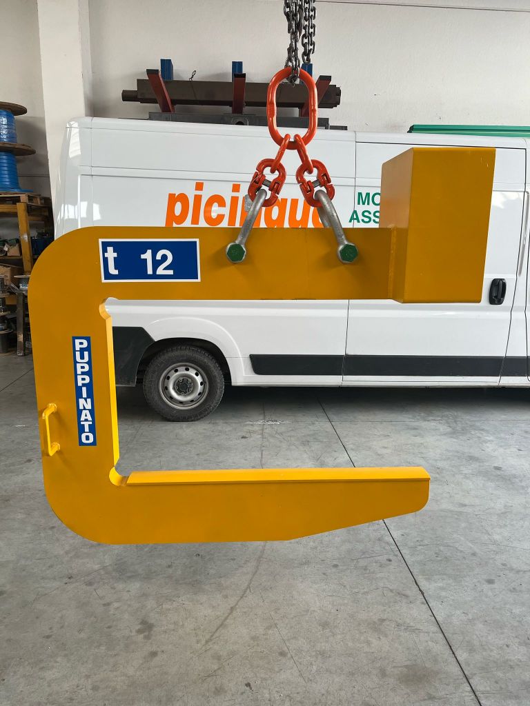 Il gancio a "C" per coils e bobine consente la movimentazione rapida e sicura di coils.
